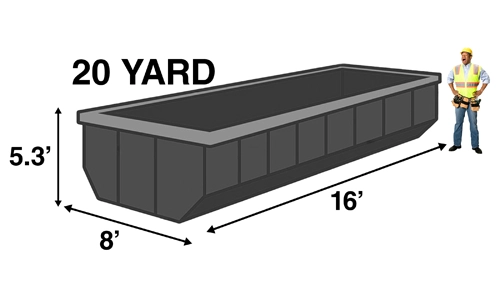 This dumpster is not designed for Concrete, Rocks or other heavy items. The 20 Yard Dumpster is best for general non-hazardous waste and it holds approximately 120 32-Gallon Trash Bags or 8 Standard pickup truckloads of waste. Use for yard care, home renovations, garage cleanouts, business cleanouts, ect…