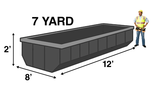 The 7 Yard Lowboy Dumpster is best for Concrete, Dirt, Bricks, Rock, and other heavy items. All clean fill concrete must be broken into chunks under 24″ x 24″ to get this special pricing, or tonnage will apply.